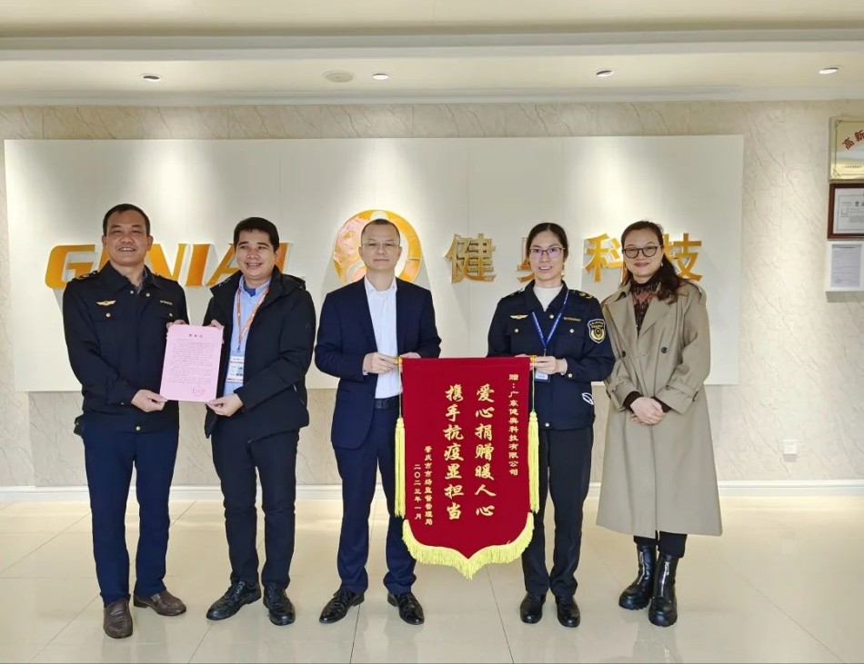 2023年1月,肇慶市市場監(jiān)督管理局向健奧科技頒發(fā)愛心捐贈錦旗。