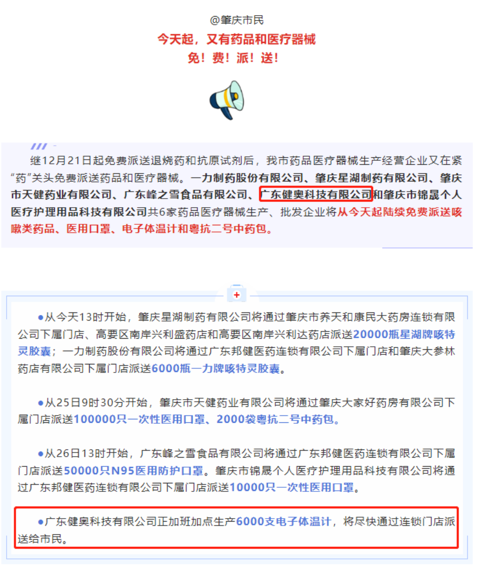 在新冠疫情防控期間,健奧科技一直積極響應(yīng)各級政府的號召、配合防疫物資保供應(yīng)的安排,為居民健康和疫情管理作出力所能及的貢獻(xiàn)。