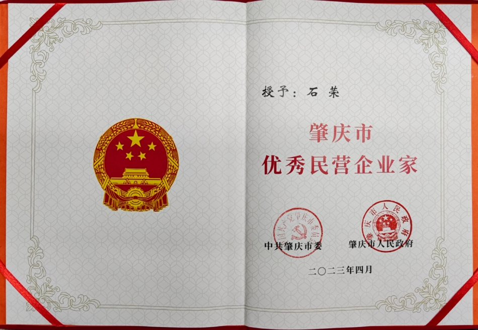 我司董事長石榮獲評為“”肇慶市優(yōu)秀民營企業(yè)家”,這是對石榮在企業(yè)經(jīng)營管理方面所作貢獻(xiàn)的認(rèn)可。他踐行卓越績效的管理模式,重視員工培訓(xùn)和發(fā)展,同時(shí)注重產(chǎn)品質(zhì)量和客戶服務(wù),為企業(yè)的發(fā)展奠定了堅(jiān)實(shí)的基礎(chǔ)。