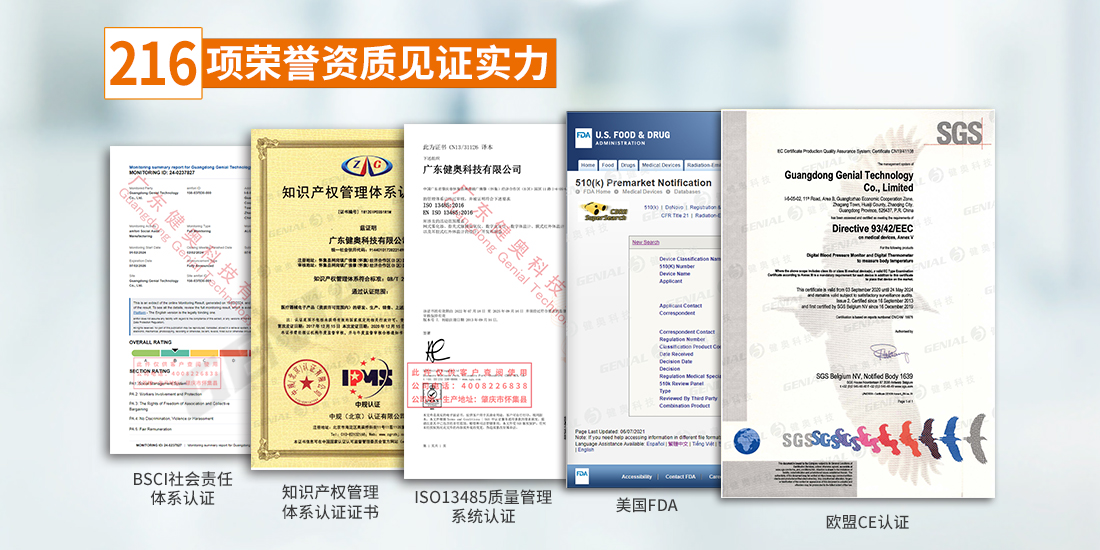 不斷研發(fā)創(chuàng)新,企業(yè)已經(jīng)獲得216項榮譽資質(zhì),并且通過了ISO 13485 、ISO 45001、 ISO 14001、GB/T 29490知識產(chǎn)權(quán)管理體系認證、BSCI社會責任體系認證;